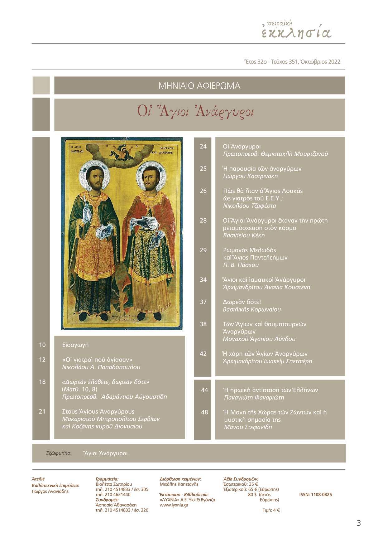 Το κεντρικό αφιέρωμα έχει θέμα: Άγιοι Ανάργυροι
