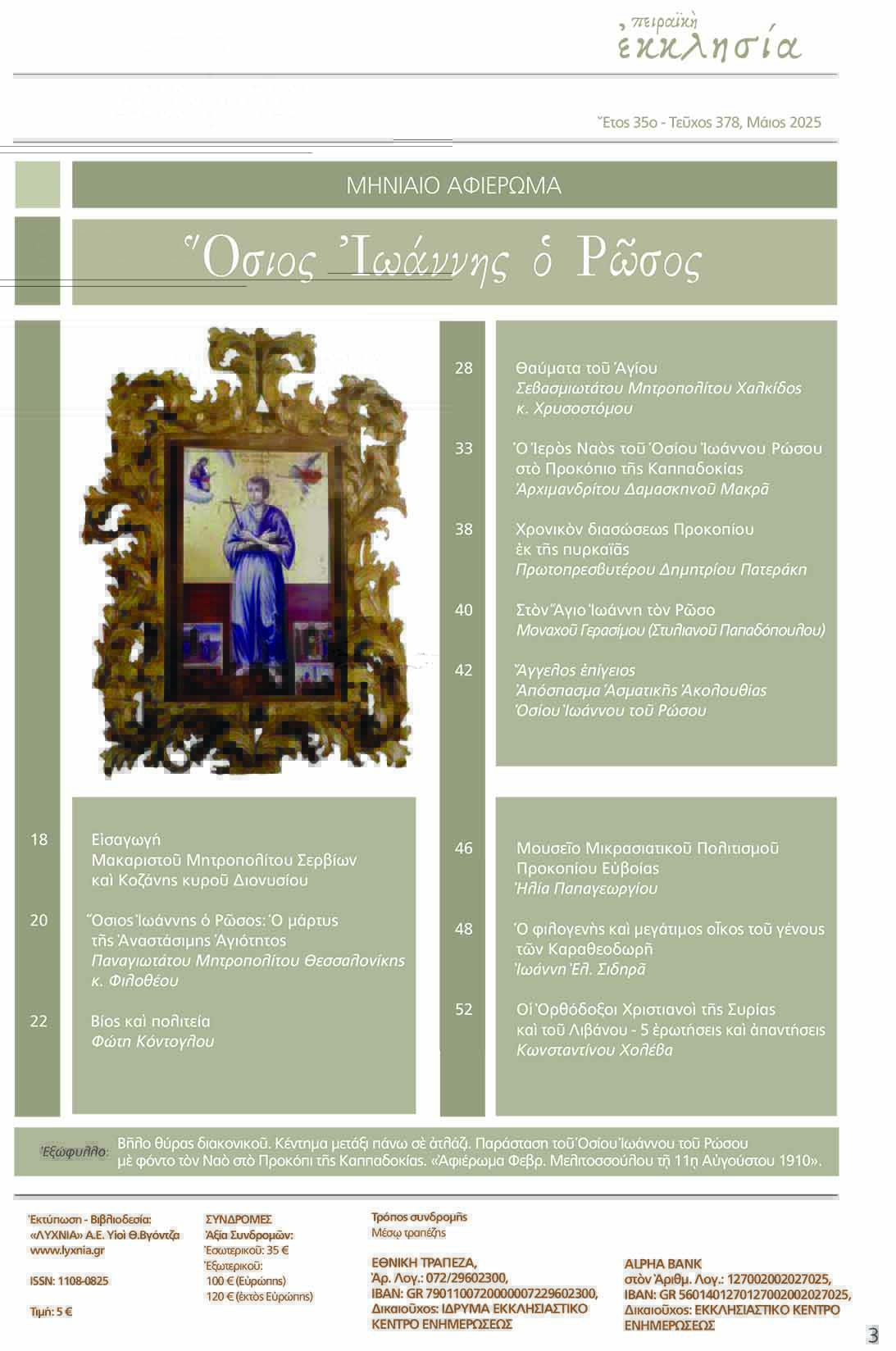 Κυκλοφόρησε το τεύχος του περιοδικού «Πειραϊκή Εκκλησία» για τον μήνα Μάιο 2025.