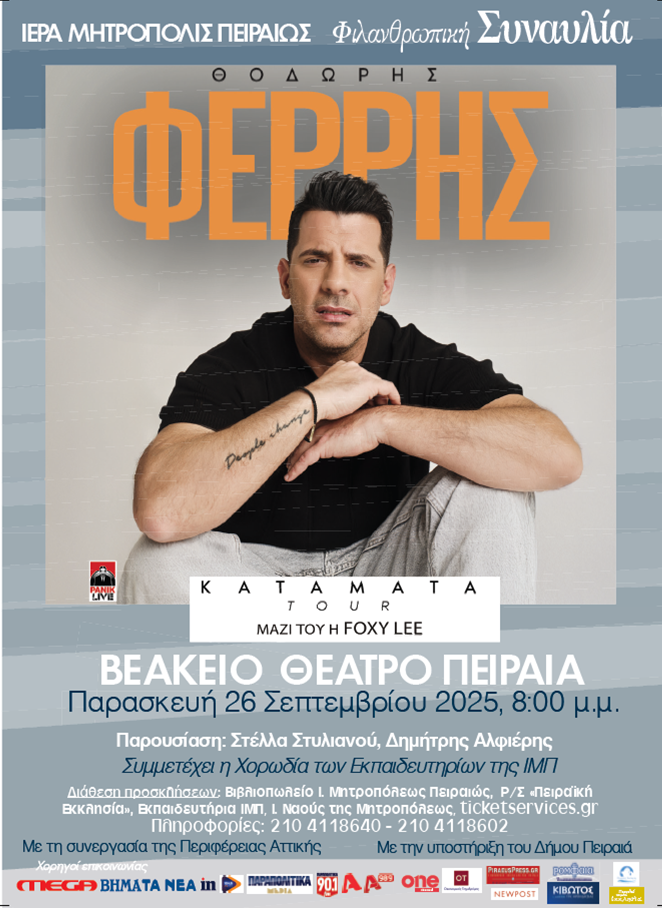 Φιλανθρωπική Συναυλία της Ιεράς Μητροπόλεως Πειραιώς με τον Θοδωρή Φέρρη στο Βεάκειο Θέατρο – 26 Σεπτεμβρίου 2025